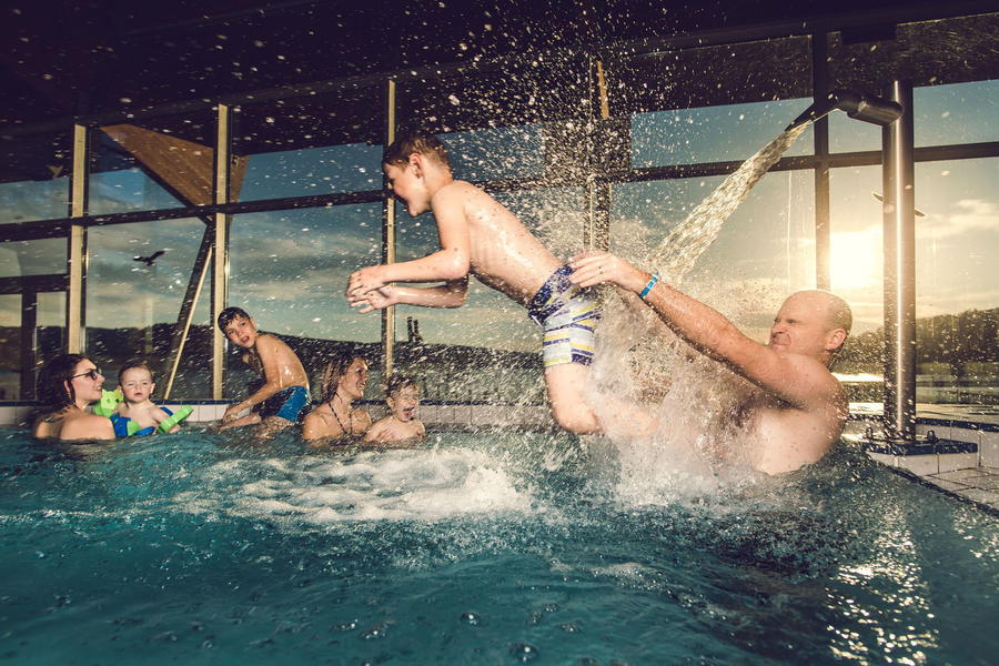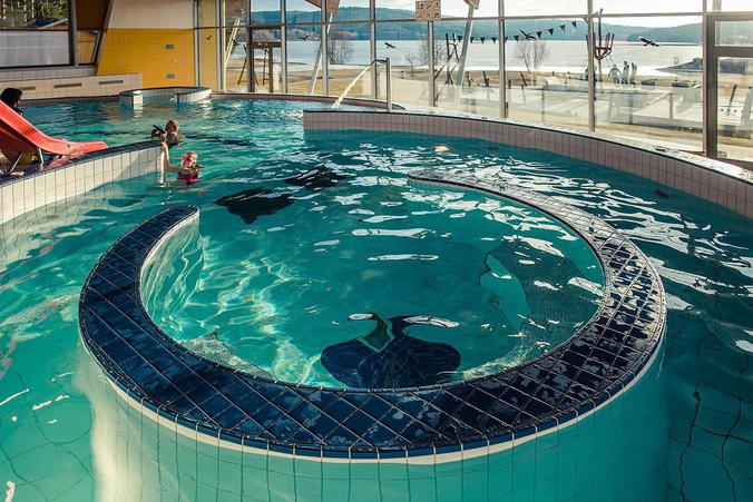 Vodní radovánky s výhledem na jezero Lipno? Dětská vodní skluzavka, vodní trysky nebo bazén s protiproudem? To všechno vás čeká v Aquaworldu Lipno.