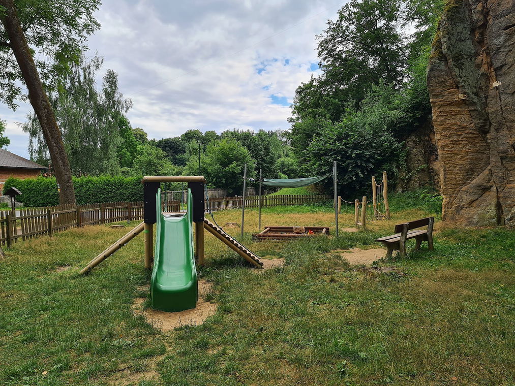 Menší oplocené dětské hřiště ve Mšenu v Jezerní ulici