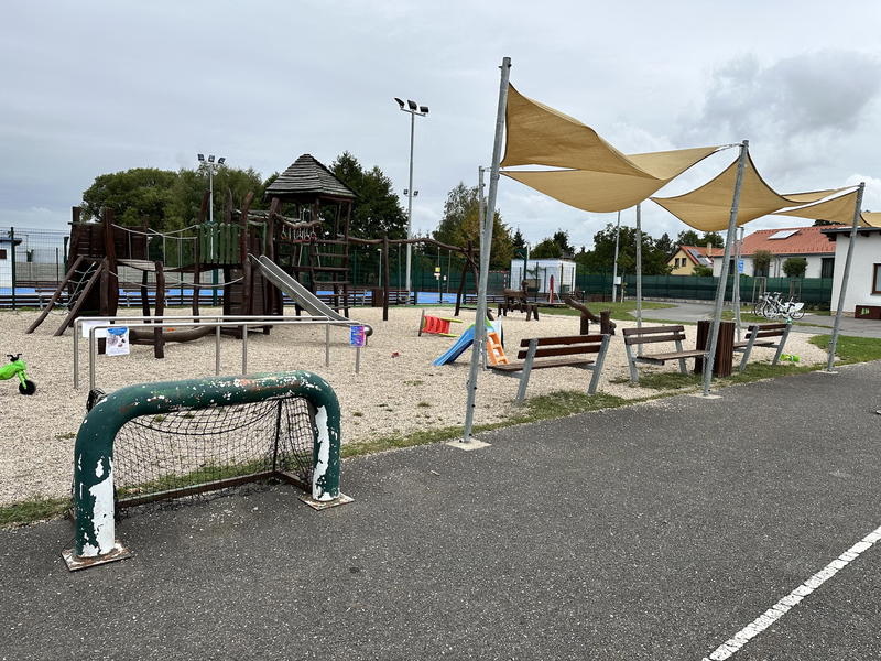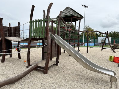 U opravdu velkého sportovního areálu najdete stejně velké dětské hřiště, kde se děti určitě zabaví. najdete zde klasické pískoviště, prolézačky, kolotoč, nebo třeba dřevěné houpačky v různých tvarech. Šplhadla a prolézačky jsou navíc šikovně rozmístěny po celém areálu, takže děti můžou přebíhat a brzy je tak nezačnou nudit.
