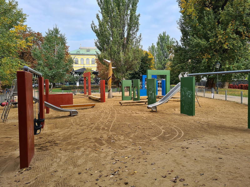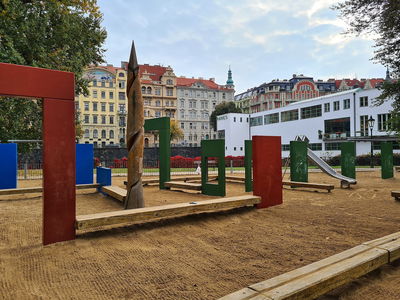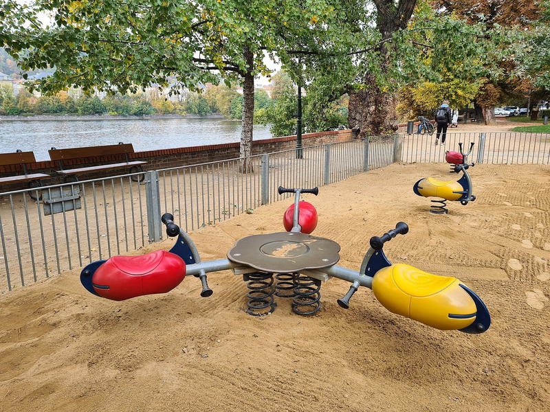 Dětské hřiště v centru Prahy na Slovanském ostrově.