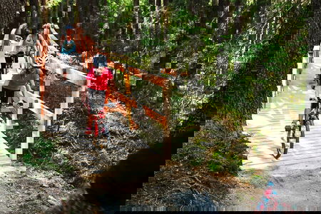 Jestli nemáte vlastní kola, nevadí. Jen pár kroků od Stezky v korunách stromů na Lipně si můžete půjčit kola, která jsou perfektní pro zdolání floutrejlu. Navíc se tu nemusíte bát ošklivých pádů na asfalt, stezka vede lesem po prašné cestě a je navržena pro bezpečnou jízdu na horském kole.