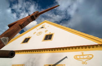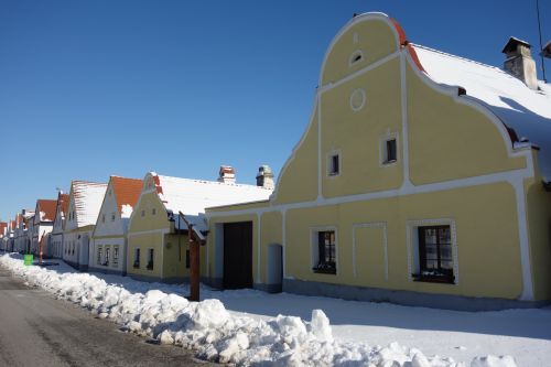 Dovednost a nápaditost dávných venkovských stavitelů je zakomponovaná v bohatě zdobených průčelích domů se širokými volutovými štíty. Ty jsou často vyzdobeny nápisy anebo motivy, které dokládají profe...