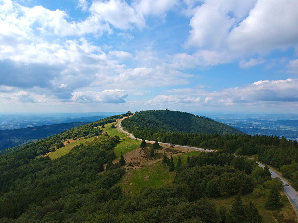 Z holého vrcholu Radhoště i z cesty od Pusteven je možno spatřit jeden z nejkrásnějších rozhledů na beskydské panorama.