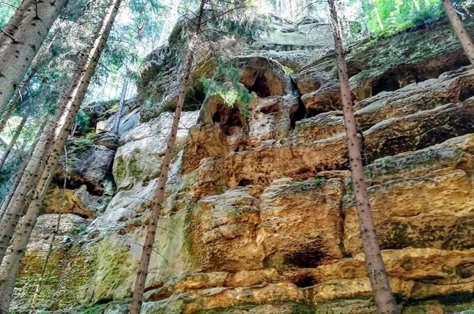 Hradčanské stěny se nacházejí v oblasti mezi Mimoní a Doksy. Stěny ukrývají zajímavé skalní útvary, např. malou Pravčickou bránu nebo Psí kostely.