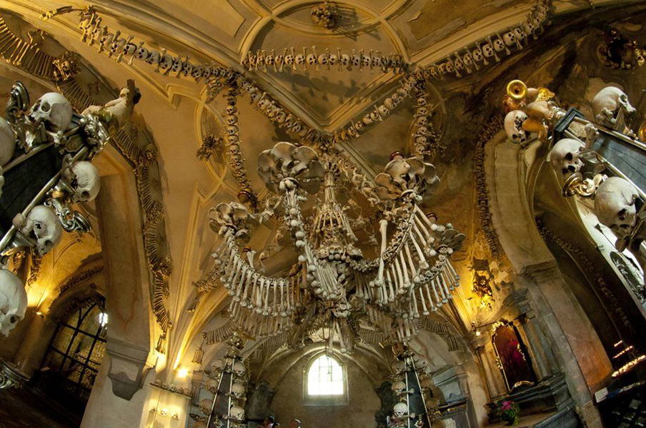 Rádi se bojíte a objevujete historické památky? Vydejte se s dětmi do unikátní kostnice pod kostelem Všech svatých na hřbitově v Sedlci u Kutné Hory.
