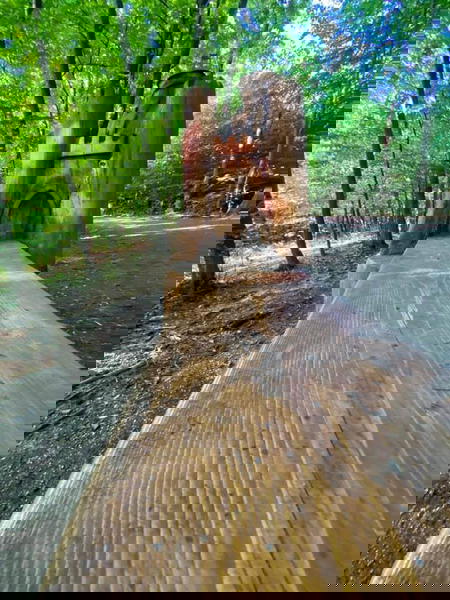 Udělejte si výlet do lesa. Ve lesním parku Klimkovice si kromě relaxu v přírodě užijete naučnou stezku a plno dřevěných prvků pro děti. Najdete tu třeba dřevěného krokodýla, vlak či hrad. Nechybí ani houpačky a zaposilovat si můžete na dřevěném workout hřišti.