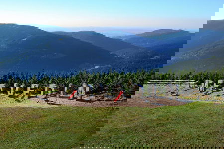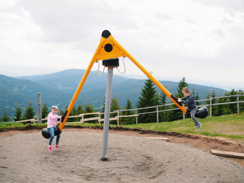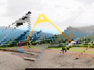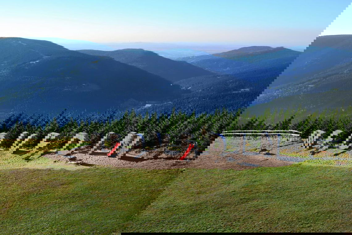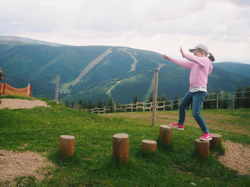Nejvýše položené dětské hřiště v České republice najdete na Medvědíně v nadmořské výšce 1235 metrů. U horní stanice lanovky stojí obří nápis MEDVĚDÍN, kde každé dřevěné písmeno funguje i jako prolézačka. Užijete si tu s dětmi zábavu i dechberoucí výhledy do okolí.