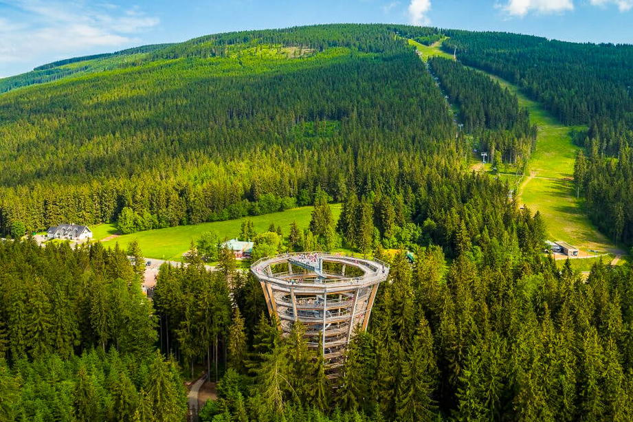 Lanovkou se nechte dovézt až na vrcholek Černé hory, odkud prosvištíte na koloběžce až do cílové rovinky. Zvolit si můžete jednu ze tří tras, které jsou rozdělené podle obtížností. Nejkratší žlutá měří 8 kilometrů a zavede vás ke Stezce korunami stromů v Janských lázních, kde si výlet na koloběžkách krásnou krajinou ještě zpestříte a uvidíte tu nádhernou přírodu z jiné perspektivy.