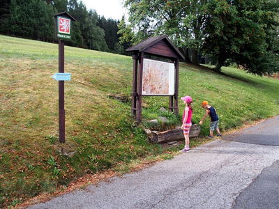 Největší zajímavostí je mlecí kámen ze zlatorudného mlýna a ukázka kmene mohutného šumavského smrku. odpočinout si můžete u pevného kanadského stolu s výhledem na romantické údolí hartmanického Zálesí.