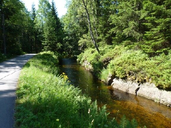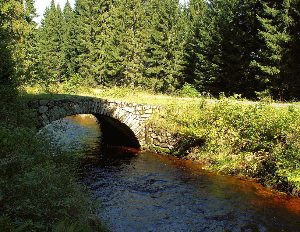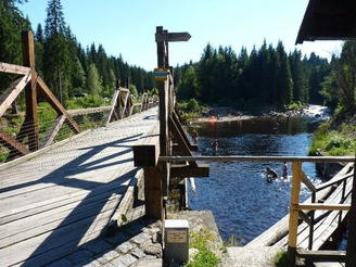 Začátek naučné stezky Vchynicko-tetovský kanál hledejte zhruba na polovině cesty mezi Modravou a Antýglem. Výchozím bodem stezky je obnovený hradlový most zvaný Rechle.