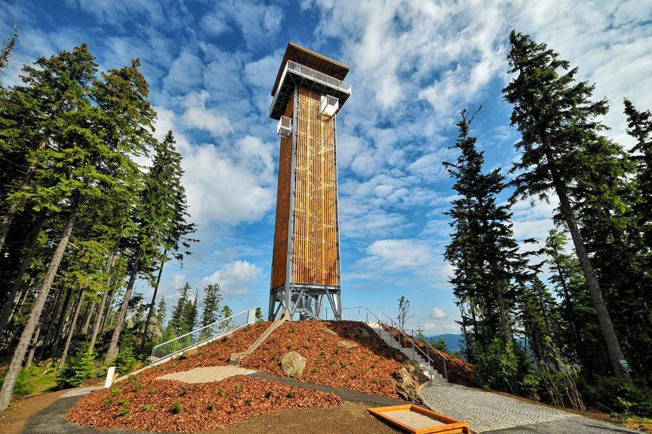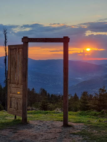Když vyšlápnete na vrchol Pancíř (1214 m) - a vyšlápnete znamená buď po některé z turistických tras, po asfaltové silnici s kočárkem nebo i sedačkovou lanovkou - najdete zde rozhlednu, chatu a... otevřené dveře.