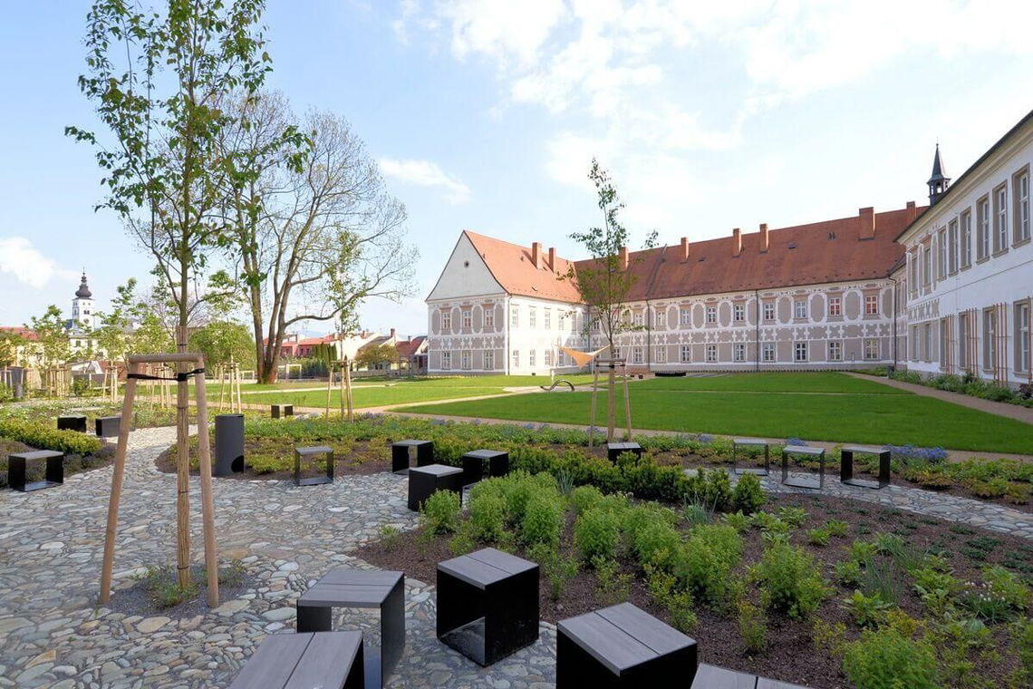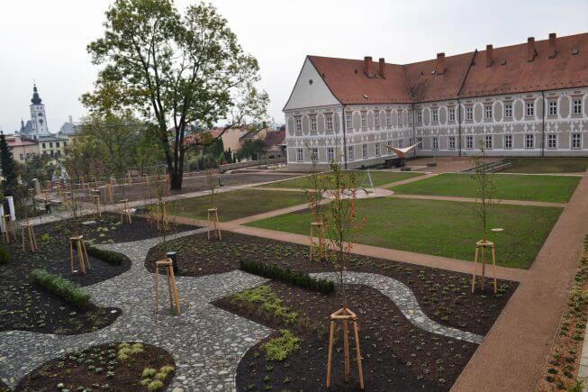 Projděte po krásných zahradách zrekonstruovaného Piaristického kláštera v Příboře. Zahrady jsou rozdělené na horní a spodní. Horní zahrada je komponovaná spíše komorněji. Nechybí zde různé typy chodníčků, zpevněných ploch, háječek obklopen spoustou zeleně s posezením a kašnou uprostřed. Centrálním prvkem je pódium, kde by se měla odehrávat kulturní, hudební vystoupení. Z vyhlídky uvidíte celou spodní zahradu a část města.