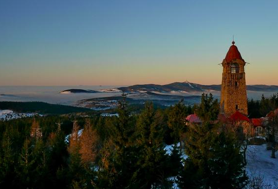 Vrchol s kamennou rozhlednou vysoký 869 m.n.m., který je viditelný snad ze všech koutů měst Liberec a Jablonec nad Nisou, se nazývá Černá studnice. Rozhledna patří svými 26 metry k nejvyšším jizerskohorským kamenným rozhlednám vůbec.