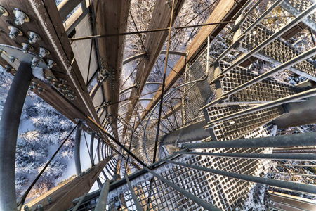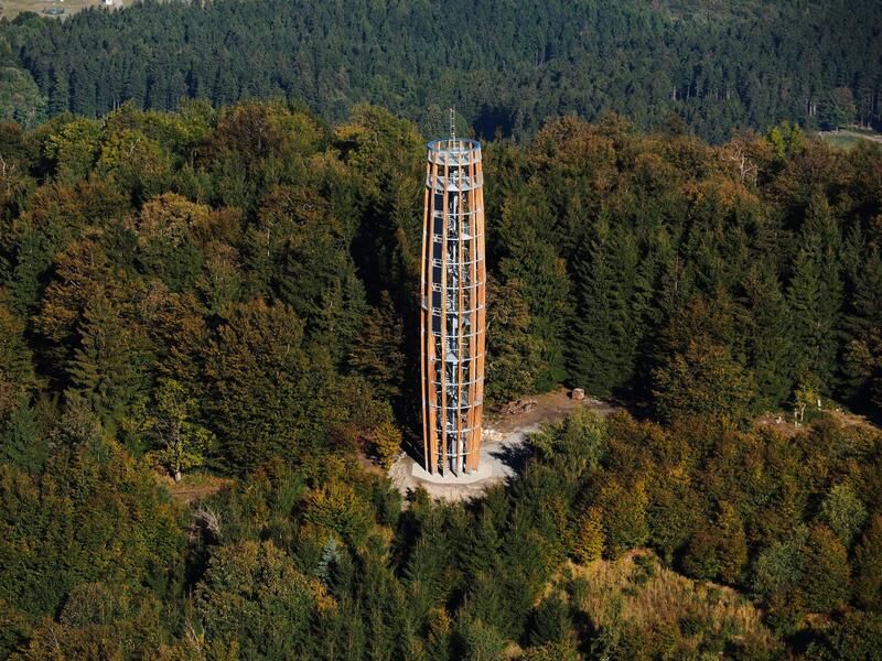 Věž se skládá z centrálního ocelové sloupu s točitým schodištěm. Vnější obložení rozhledny tvoří 12 ohýbaných modřínových lamel, jejichž půdorys připomíná hodinový ciferník. Po dobu výstupu může návštěvník sledovat okolí skrze lamely. Každ...
