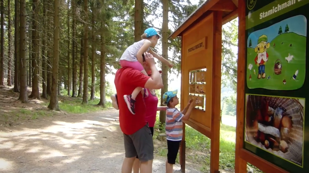 Už tam budem? Častá otázka dětí, když jdete na výlet, že? Jak se tomu vyhnout? Choďte na naučné stezky. Ta Stamichmanova je jen 800 m dlouhá. Zato tu děti čeká 10 zastávek, na kterých se dozví o tom, jak se žije v lese. Potkají též vyřezávané sochy nebo jeskyni z kamenů. A když si v infocentru Marcelka vyzvednete hrací kartu, bude stezka ještě zábavnější.