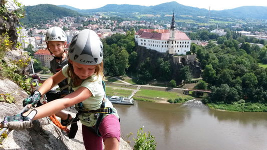 Přímo v centru Děčína můžete zažít pořádný adrenalin. Nachází se zde totiž via ferrata, tedy zajištěná cesta. Jedná se o nejdelší ferratu v Čechách. Nabízí 14 různých výstupových cest dlouhých 150-170 metrů s obtížností A-F (tedy od úplných nováčků po zkušené horolezce). Bez větších problémů zdolají stěnu i sportovně zdatné děti. Vstup na ferratu je zdarma.