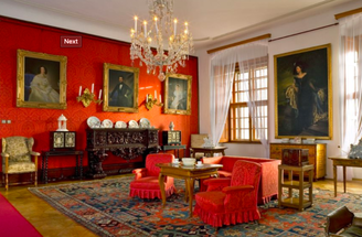 Nejvýznamnější je výzdoba Zlatého sálu s kazetovým, bohatě vyřezávaným dřevěným stropem, další autenticky zachované kazetové stropy jsou v sálech Modrém a Rytířském a sklípkové klenby v gotické části zámku.