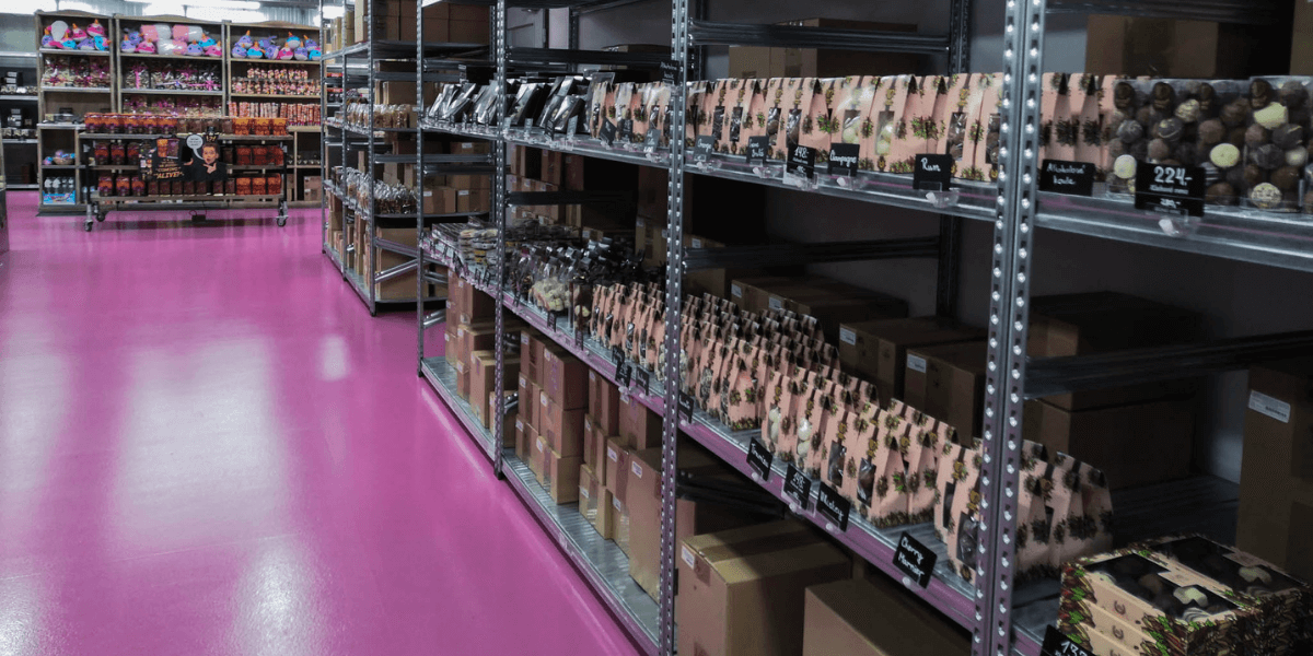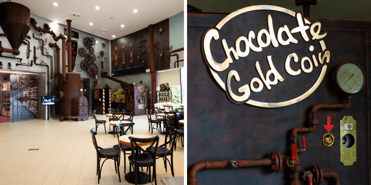 Za nimi je už průchod do prodejního skladu plného čokolády, kde se můžete zásobit touhle návykovou sladkostí. Ale můžete se i neomezeně vracet do horní části herny. My tu strávili určitě minimálně hodinku.
