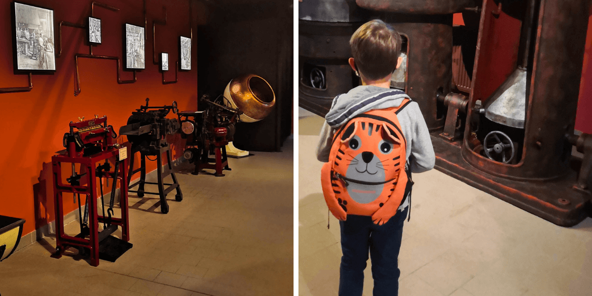Prohlídka začíná ukázkou historických strojů na zpracování kakaových bobů a výrobu čokolády. Není dlouhá a zaujme i děti, alespoň našeho nejmladšího pětiletého účastníka výletu rozhodně ano.