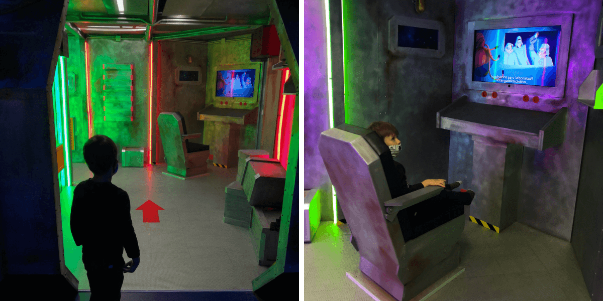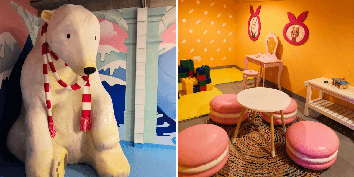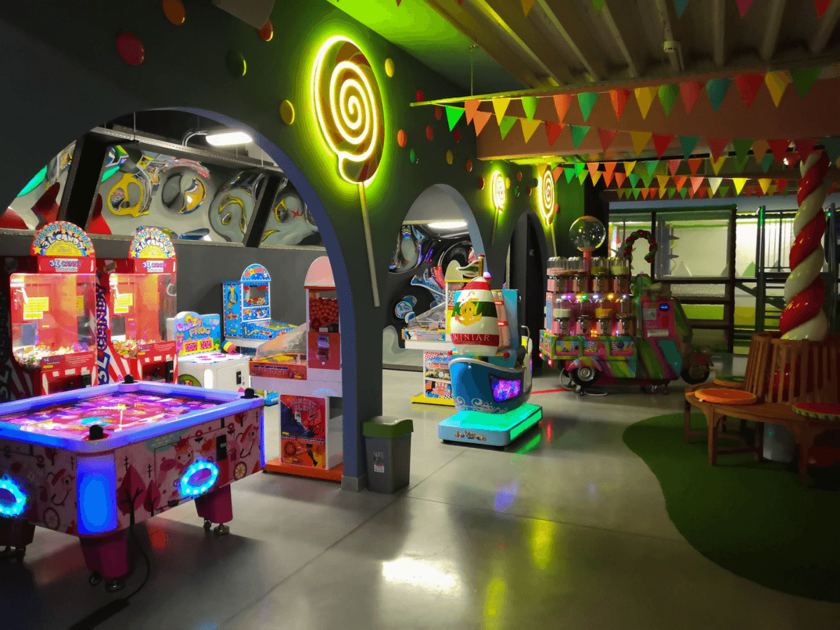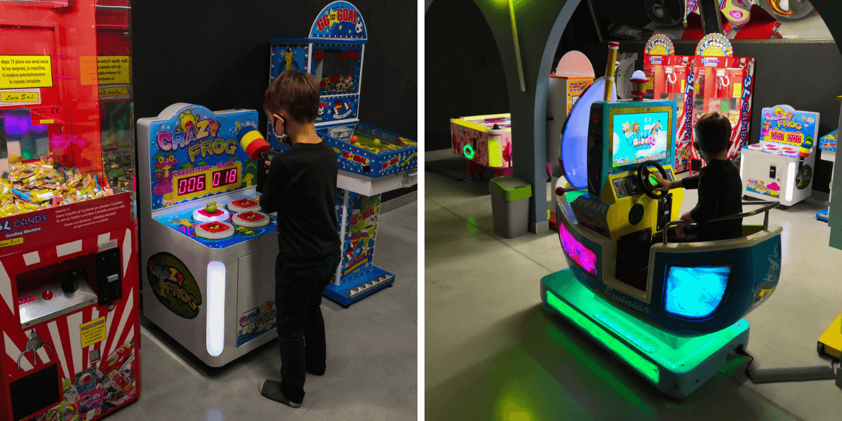 V horním patře najdete velkou prolézačku se skluzavkou do spodního patra, roztomilý domeček na hraní, fotokoutky a spoustu dětských atrakcí a automatů se sladkostmi. Děti byly totálně nadšené.