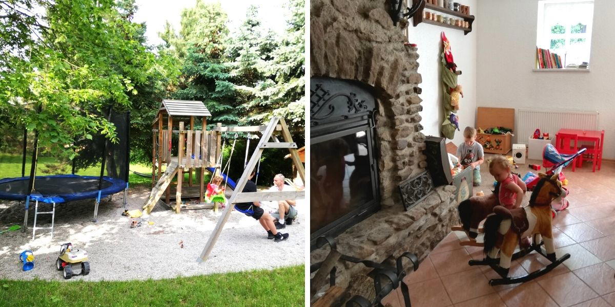 V zahradě u pensionu je krásné hřiště i s trampolínou, vše v příjemném stínu stromů. Ve společných prostorech penzionu najdete dětský koutek s hračkami i knížkami.