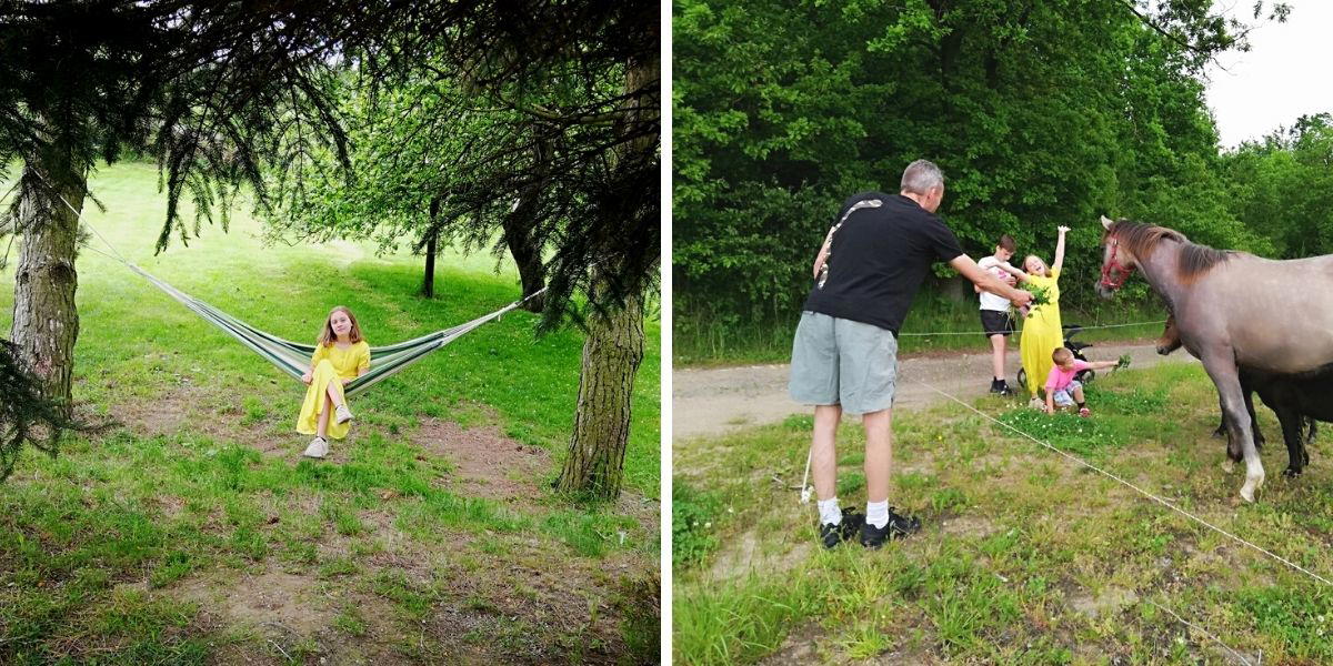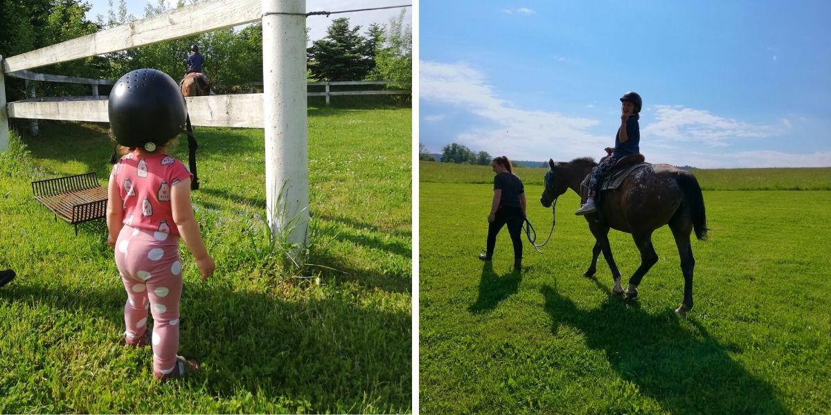 Domluvili jsme si jízdu na koních, jízdárna je hned u pensionu. Vanesu vzala paní i na projížďku lesem.