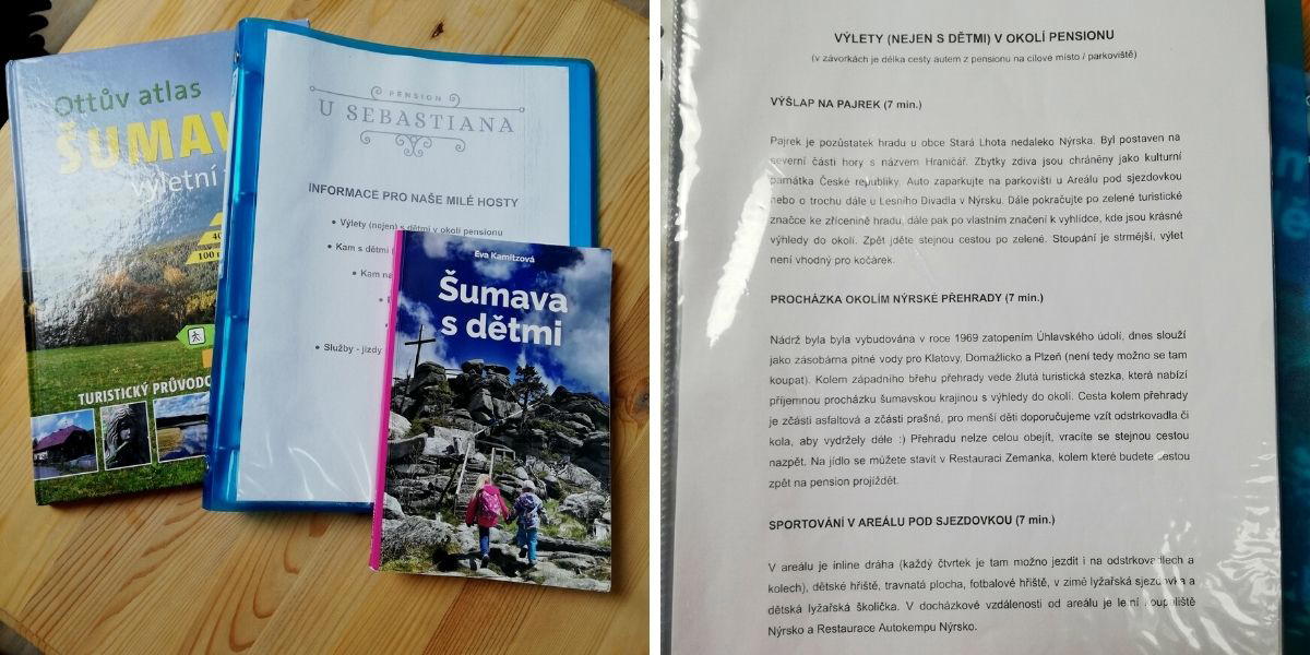 Celkový dojem tvoří detaily a tady si dávají opravdu záležet. Například každé z dětí dostalo při odjezdu milý dárek - pexeso s fotografiemi pensionu a okolí. Potěšilo nás také perfektní zpracování tipů na výlety v okolí a knížky s výlety pro inspiraci, které jsou v penzionu k zapůjčení.