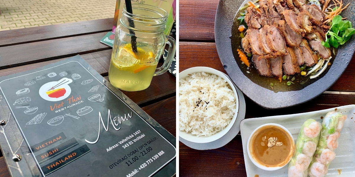 Přijeli jsme v čase oběda a na jídlo nám pan majitel doporučil restauraci Viet - Thai přímo naproti apartmánovému domu, stačí přejít ulici. Vše co jsme ochutnali, bylo výborné, nadchla nás hlavně křupavá kachna na medu.
