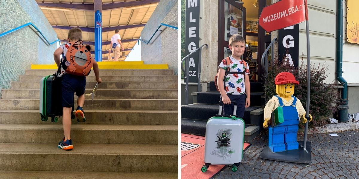 Do Kutné Hory jsme se vypravili z Prahy vlakem a celou cestu se syn o svůj LEGO kufr nadšeně staral sám.