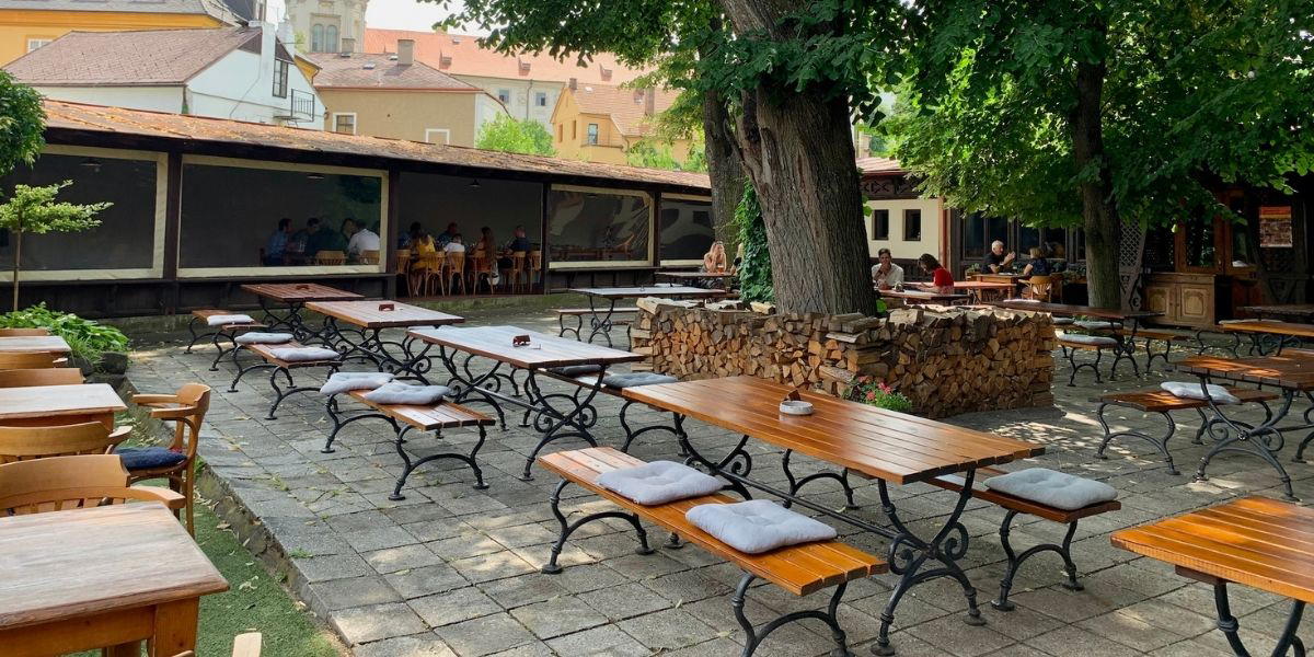 Pro oběd jsme zvolili restauraci Dačický s krásným venkovním posezením pod stromy.