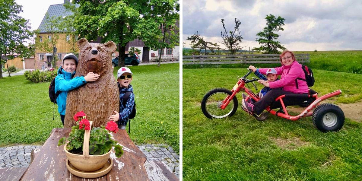 Druhý den jsme se vydali zdolat v Božím Daru Ježíšovu stezku a naučnou stezku rašeliništěm. Stihli jsme si také pohrát si v parku v Božím Daru a vyzkoušet horské káry.