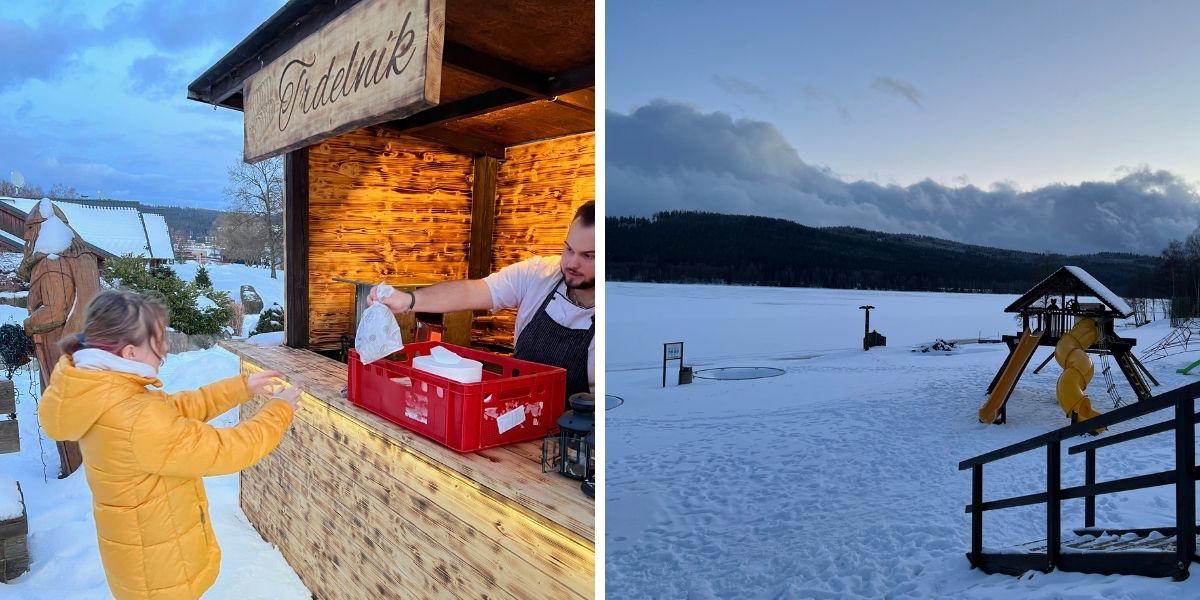 Pokud dostatečně mrzne, mění se přehrada v největší přírodní bruslařskou dráhu na světe, od roku 2009 je lipenská Ledová magistrála zapsaná do Guinessově knihy rekordů. My jsme tu bohužel byli v době, kdy led nebyl dostatečně pevný pro bruslení, tak jsme si jen užívali výhled na vodní hladinu z hotelové terasy s voňavým trdelníkem, které tu pečou.