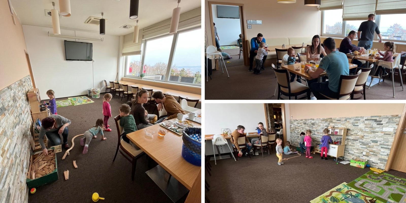 Oceňuji především dětský koutek v samostatné místnosti hned vedle restaurace. Jsou zde i stoly, takže tu můžete posnídat, zatímco se vaše děti batolí mezi hračkami. Dcerka tady byla maximálně spokojená.