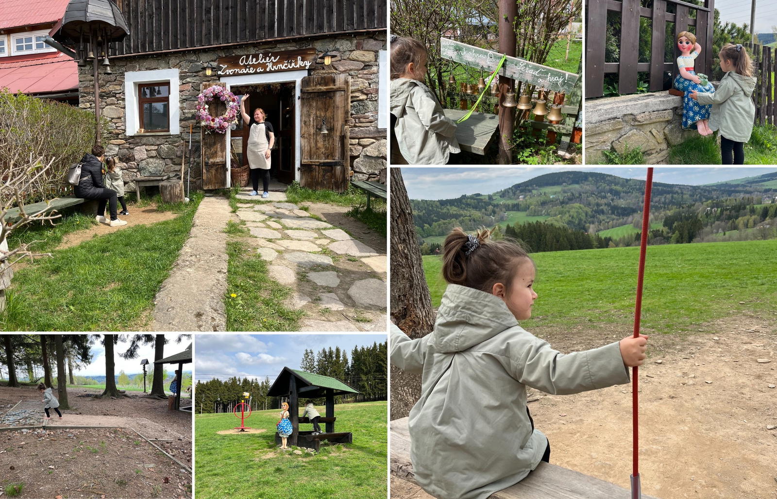 Jedna z nejhezčích stezek pro děti, kterou jsme kdy prošli, je určitě Kačenčina pohádková stezka. Začíná ve vesničce Deštné v Orlických horách, kde jsme si v muzeu koupili hrací kartu (jde koupit i na několika jiných stanovištích), a vyrazili směr Ateliér zvonaře a hrnčířky.