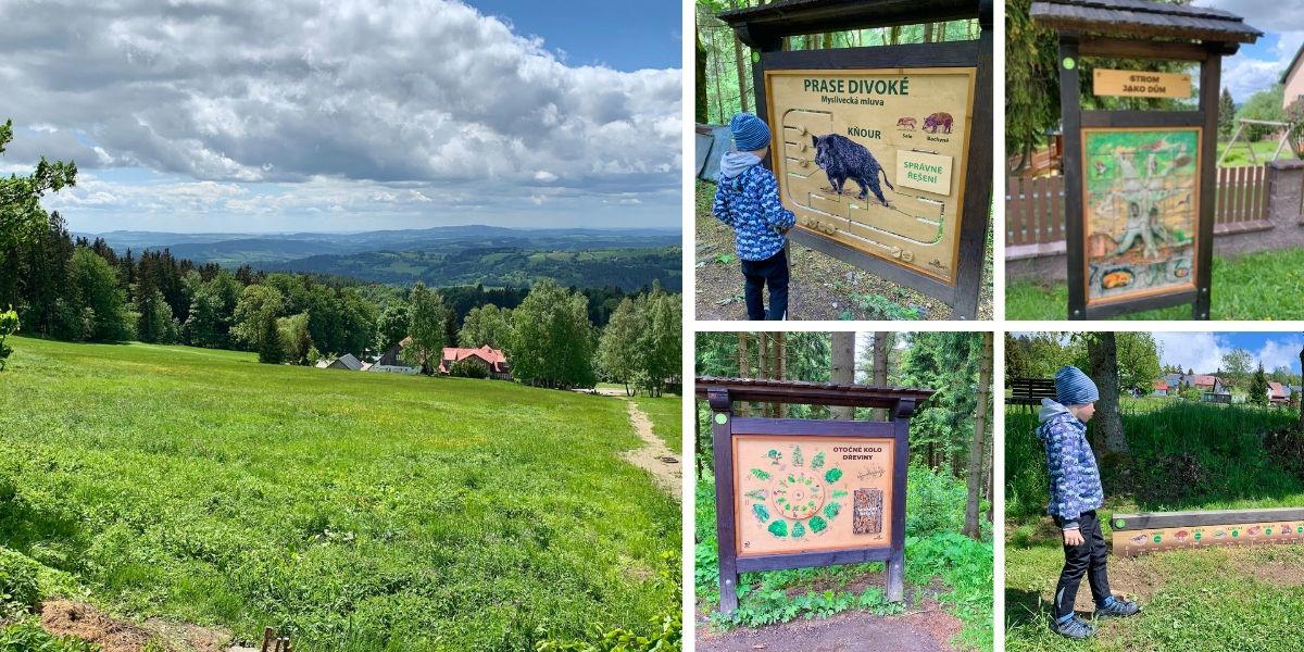 Liják se změnil jen v lehký déšť, proto jsme vyrazili na Benecko, kde je hned několik rodinných stezek s úkoly. Prozkoumejte je všechny v samostatném článku o Benecku. Během oběda pršet přestalo úplně, tak jsme si užili pohodovou procházku Beneckou přírodní stezkou. Stezka je nová, má moc hezky zpracované panely s úkoly, cestou potkáte dětské hřiště a terén je vhodný i pro kočárky.