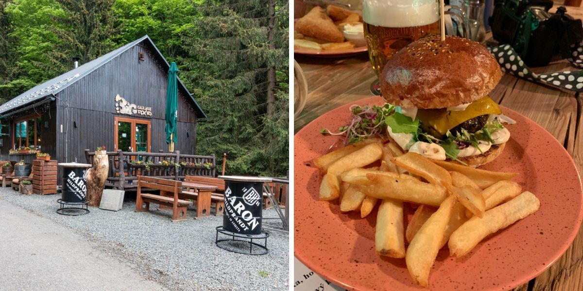 Odpoledne jsme se cestou domů zastavili v Rokytnici nad Jizerou a dali si naši oblíbenou trasu Krakonoš a lyžníci s obědem v bistru Big Food Garage. Na začátek trasy lze vyjet i lanovkou, ale kdo chce pořádně potrénovat fyzičku, vydá se pěšky už z parkoviště skiareálu (u nás to byl jen tatínek :) )