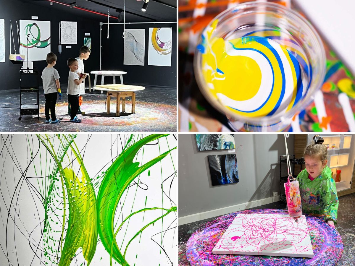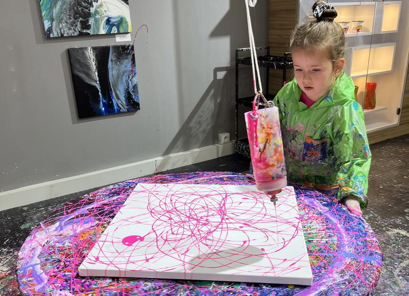 Další fází bylo zvolit si velikost plátna (ze 14 velikostí) a techniku malby. Na výběr máte ze tří druhů: pouring - nalévání barev, pendulum art - tvoření pomocí kyvadla a otáčejícího se stolu, a spin art, které je kombinací rotujícího plátna a zavěšené malířské hrazdy.