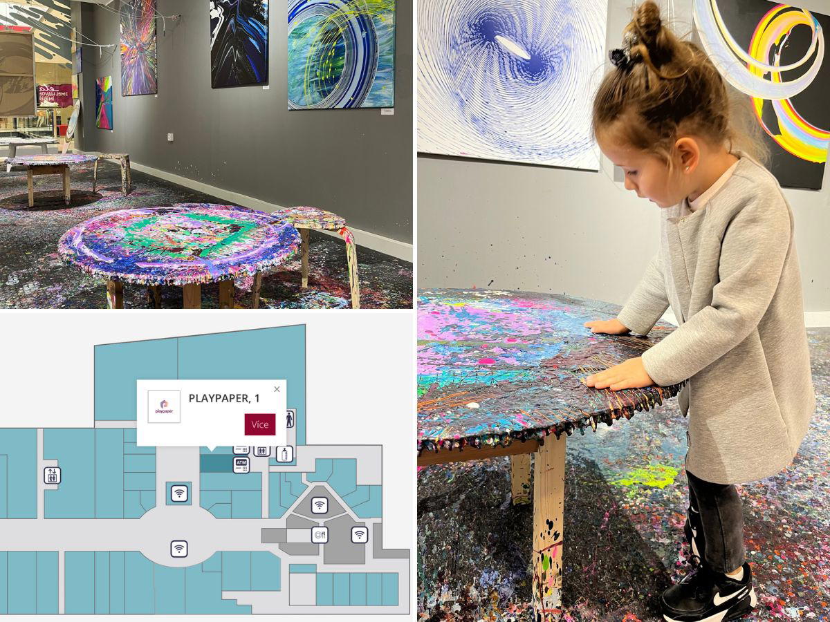 Ateliér Playpaper najdete v 1. patře nákupního centra Arkády Pankrác, konkrétně v "odbočce" uprostřed obchodního domu. Umělecká dílna je poměrně prostorná, takže pokud se zde setká více malých umělců najednou, nikdo se nemačká a má pro své tvoření dostatek místa.