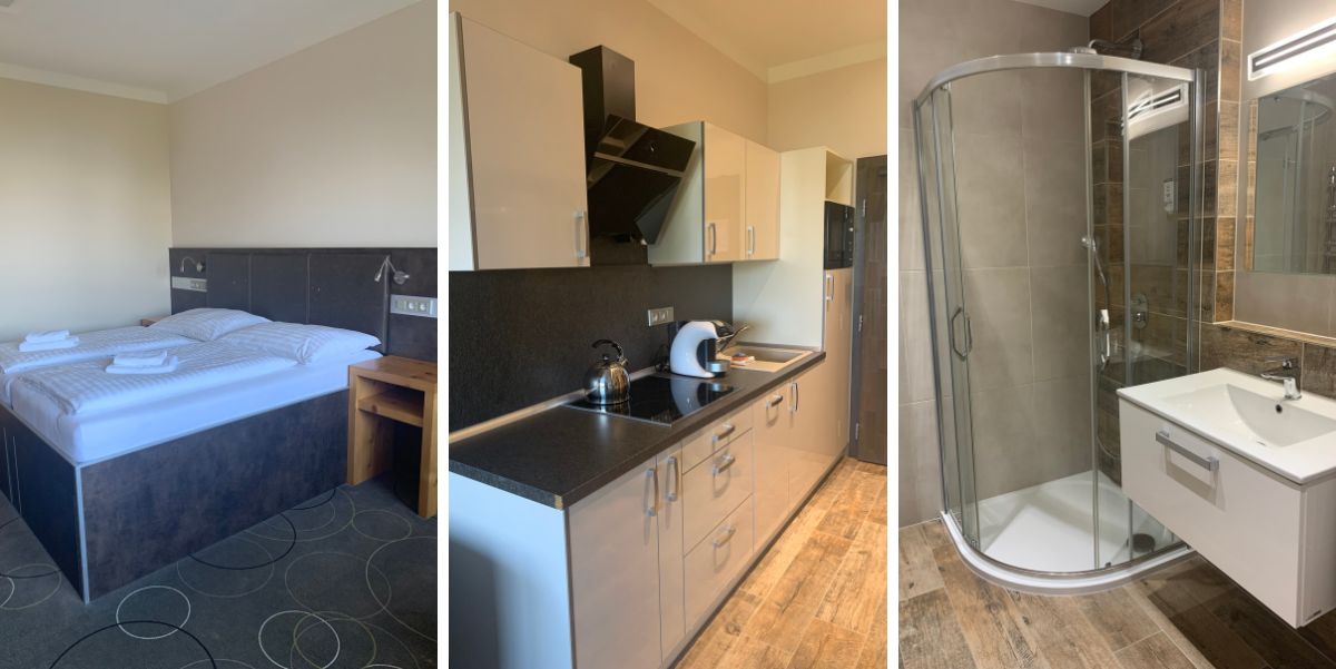 Když skupinka nadšenců přišla v roce 1881 s plánem postavit na vrcholu Plešivce rozhlednu s výletní restaurací, staří domorodci nechápali a pochybovali, že by tam někdo vůbec chodil. Časy se změnily, na Plešivec vede silnice i lanovka a někdejší obyvatelé z Abertam a okolí by se asi hodně divili. Na místě původní horské boudy dnes stojí krásný hotel Orion s apartmány a restaurací. Náš apartmán byl moc příjemný s plně vybaveným kuchyňským koutem a nádherným výhledem do lesa.