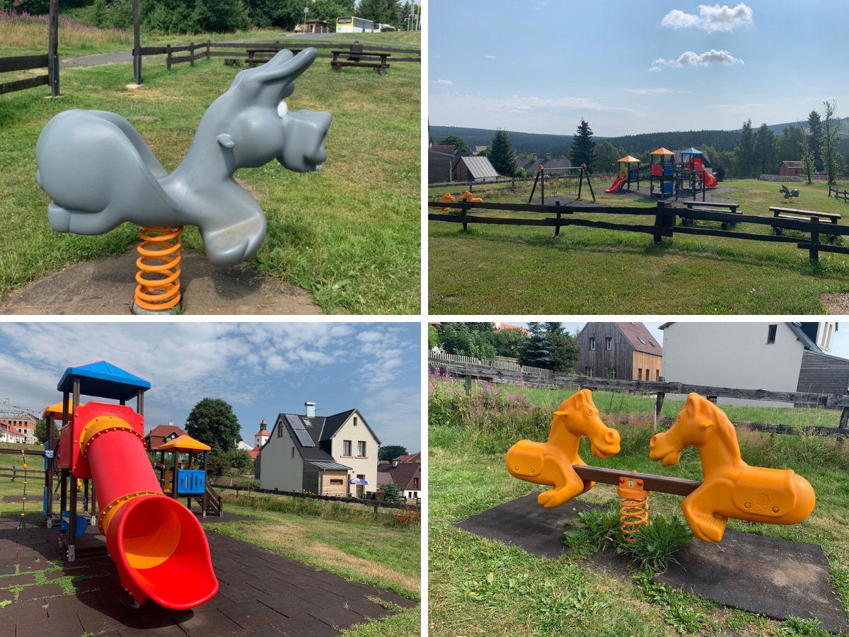Kousek od náměstí v Abertamech jsme narazili na hezké dětské hřiště.