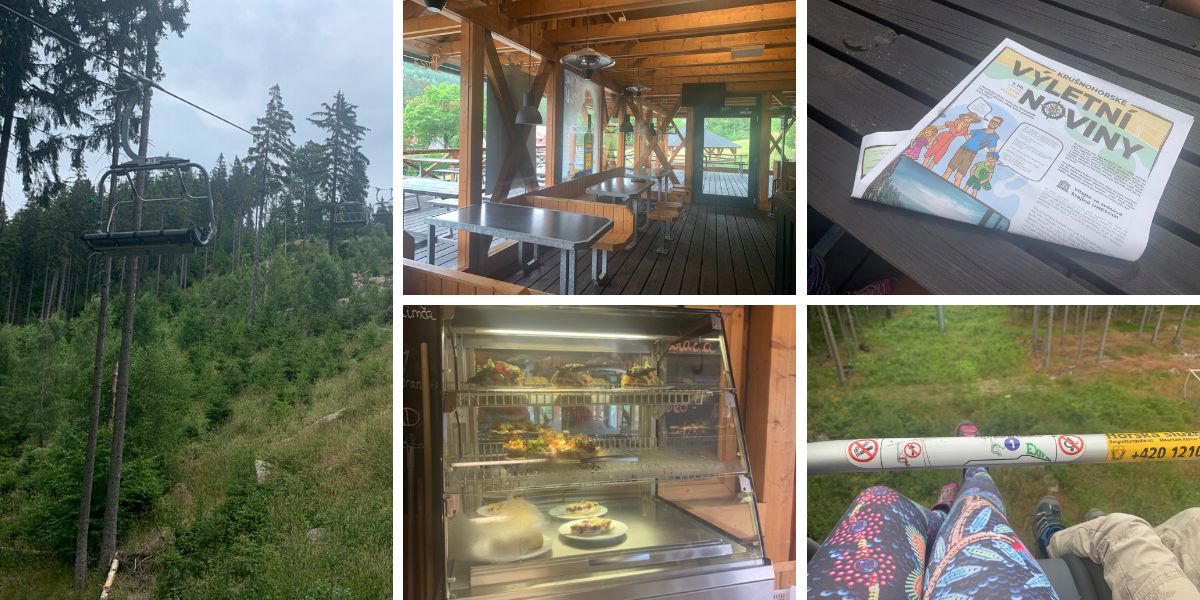 V Pstruží u lanovky jsme si odpočinuli v bistru a načerpali inspiraci z moc pěkně zpracovaných Krušnohorských výletních novin.
