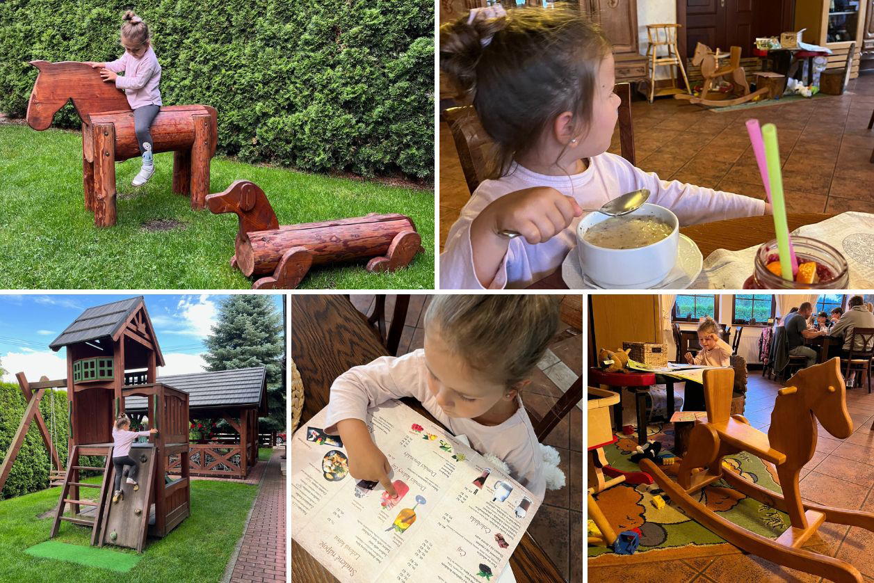 Pro malé děti vám zde rádi půjčí postýlku, nočník, stupátko a v restauraci jídelní židličky. Ohřátí příkrmu není problém, větším dětem můžete vybírat z restauračního menu. My ochutnali úžasnou valašskou kyselici, vynikající paštiku a dcerky oblíbenou svíčkovou. V restauraci je také menší dětský koutek, který vám zaručí pár minut klidu na vaše vlastní jídlo.