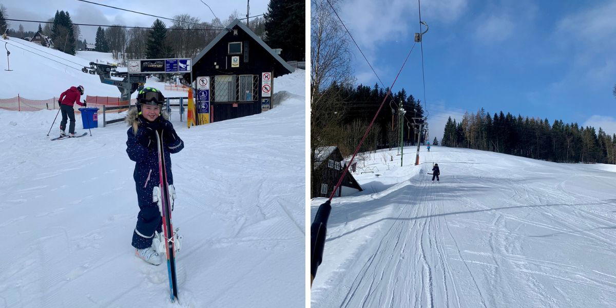 V době našeho pobytu už moc sněhu kolem apartmánů nebylo, ale ničemu to nevadilo, protože na okolních sjezdovkách panovaly stále ideální lyžařské podmínky. Za nás určitě doporučujeme lyžování ve skiareálu Černá Říčka, od apartmánů se sem dostanete autem za pár minut. Lyžařský areál je sice menší, ale pro rodiny s malými dětmi naprosto dostačující. Navíc velké plus pro nás bylo to, že u vleku se netvořily žádné fronty. Něco dobrého na zub si můžete koupit v malém bufetu pod sjezdovkou.