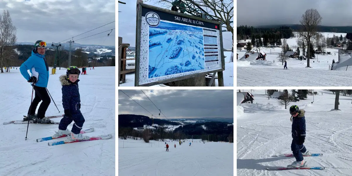 Na lyže jsme se vydali i do vesničky Příchovice, od Desné vzdálené přibližně 7 kilometrů. Lyžařský areál U Čápa je také ideální pro rodiny s dětmi a v restauraci U Čápa skvěle vaří. Rodiče určitě ocení také moc dobré pivo.