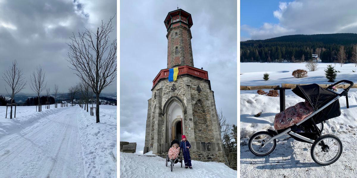 Po lyžování jsme si ještě zašli na blízkou rozhlednu Štěpánka. Pro děti přibalte pekáč nebo sáňky, na zpáteční cestě je rozhodně využijí.
