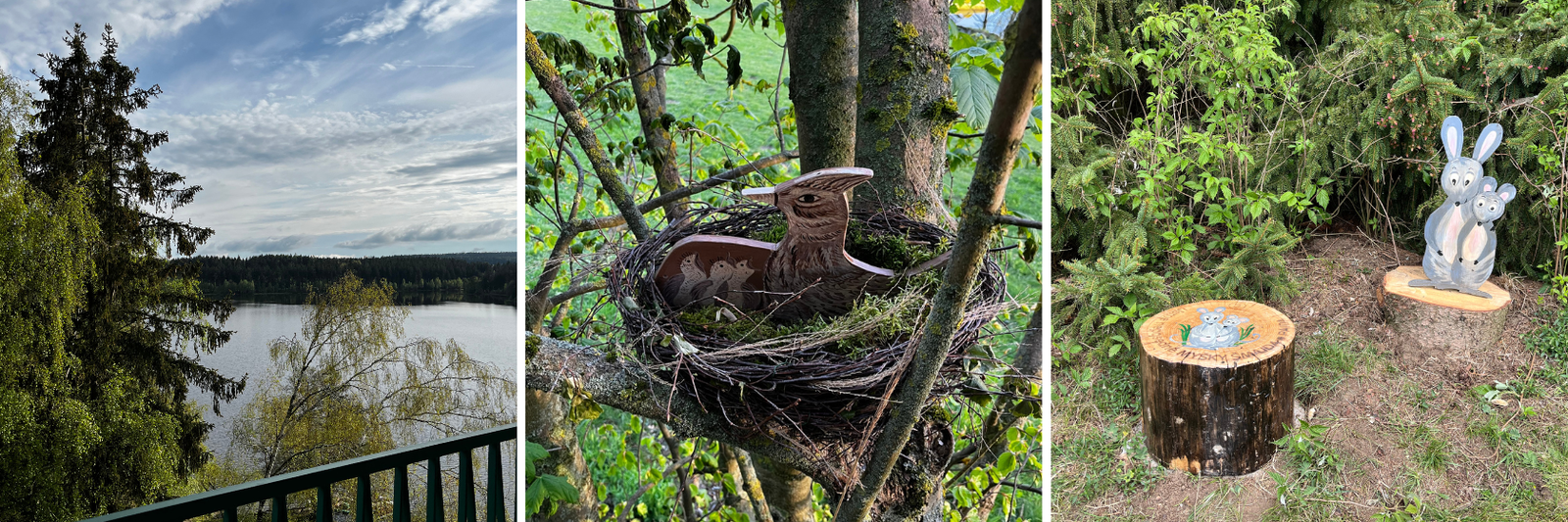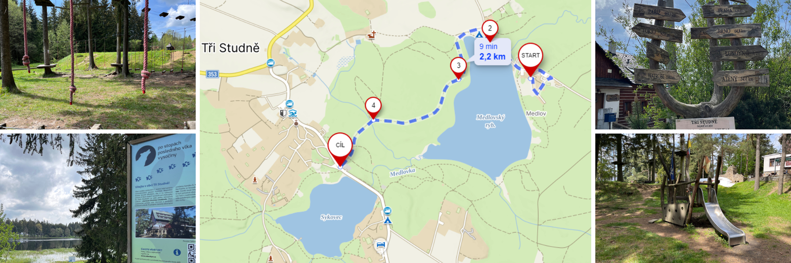 Abychom okolí probrouzdali co nejvíce, cestu jsme si prodloužili až k vedlejšímu rybníku Sykovec a po naučné stezce Po stopách posledního vlka jsme došli zpět k hotelu. Tahle procházka hlubokým lesem určitě stojí za to. Cesta k Sykovci má zhruba 2 kilometry a na konci vás čeká odměna. Na děti dětské hřiště s velkým lanovým parkem a na maminky s tatínky občerstvení v místním penzionu.