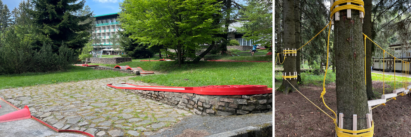 Hotel Medlov se právem pyšní svým označením “vhodný pro rodiny s dětmi”. Najdete tu totiž parádní dětské hřiště, obří park, minigolf, malý lanový svět i pláž u rybníka, který už čeká na dětské vodní radovánky. A když voda ani vzduch ještě nemají vhodnou teplotu, stačí si zapůjčit lodičky či šlapadla a vyrazit za netradičním zážitkem. V parku navíc najdete i několik ukrytých zvířátek. Najdete je všechny?