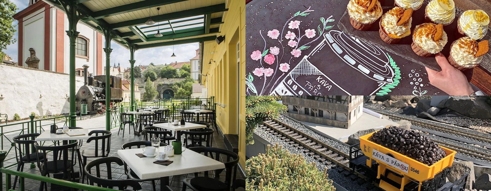 Připravte si jízdenky, průvodčí přichází! Ale nebojte, to je jenom legrace. Co ale legrace není, tak že v Kávě s párou si na své přijdou maminky, tatínkové i děti. Posaďte se na zahrádku a pozorujte děti, jak obdivují obrovskou lokomotivu přímo u vchodu. Nebo jak pobíhají kolem modelu železnice, kde uvidí i všechny litoměřické dominanty.