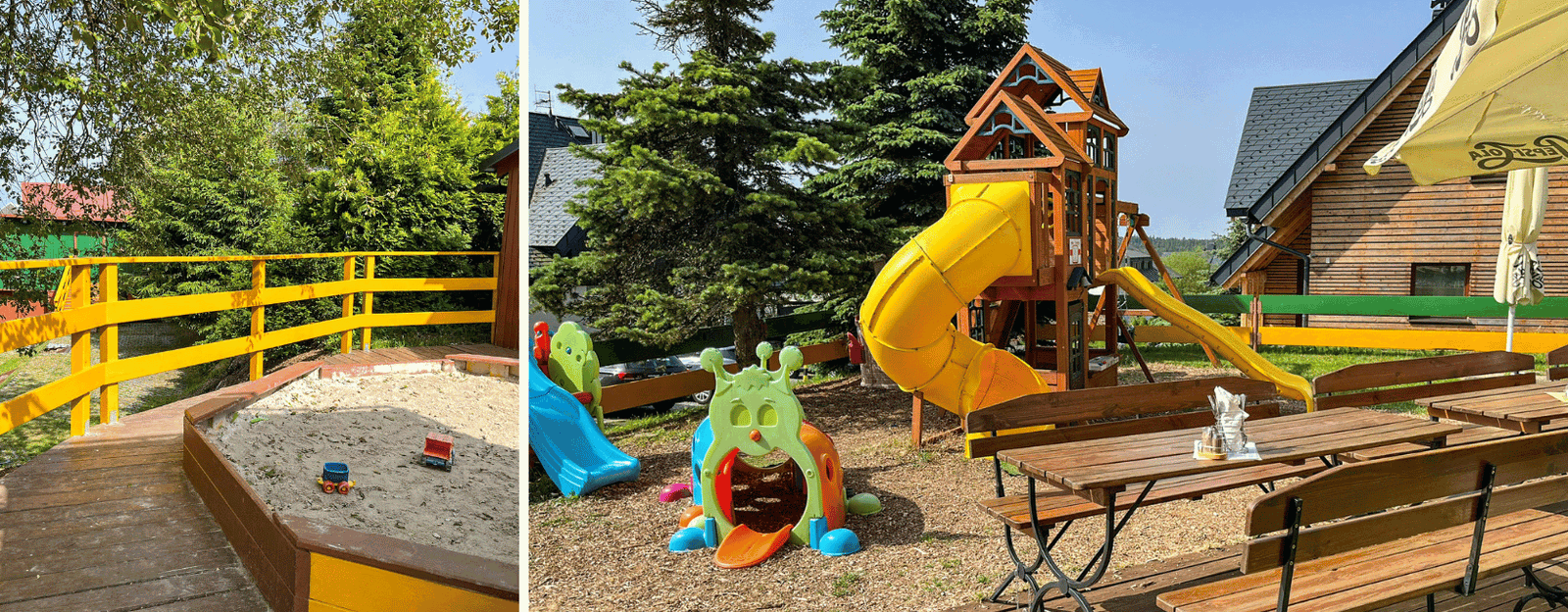 Penzion Daniela je celkově opravdu uzpůsoben vám a vašim dětem. Kromě heren a venkovního hřiště jistě oceníte nočníky i redukce na záchod připravené na pokoji nebo možnost ohřát příkrm či sterilizovat lahvičky ve spodním patře, kde je malá kuchyňka právě pro tyto účely.