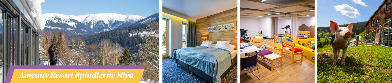 Amenity Resort Špindlerův Mlýn je ideální volbou pro rodiny, které chtějí bydlet kousek od sjezdovky a zároveň mít špičkové zázemí pro děti. Blízkost sjezdovky Labská, dětské hřiště, herna i oblíbená minizoo dělají z resortu skutečný rodinný ráj. Po dni na svahu si užijete bazén, bowling nebo wellness se saunami, zatímco děti budou ještě plné energie.